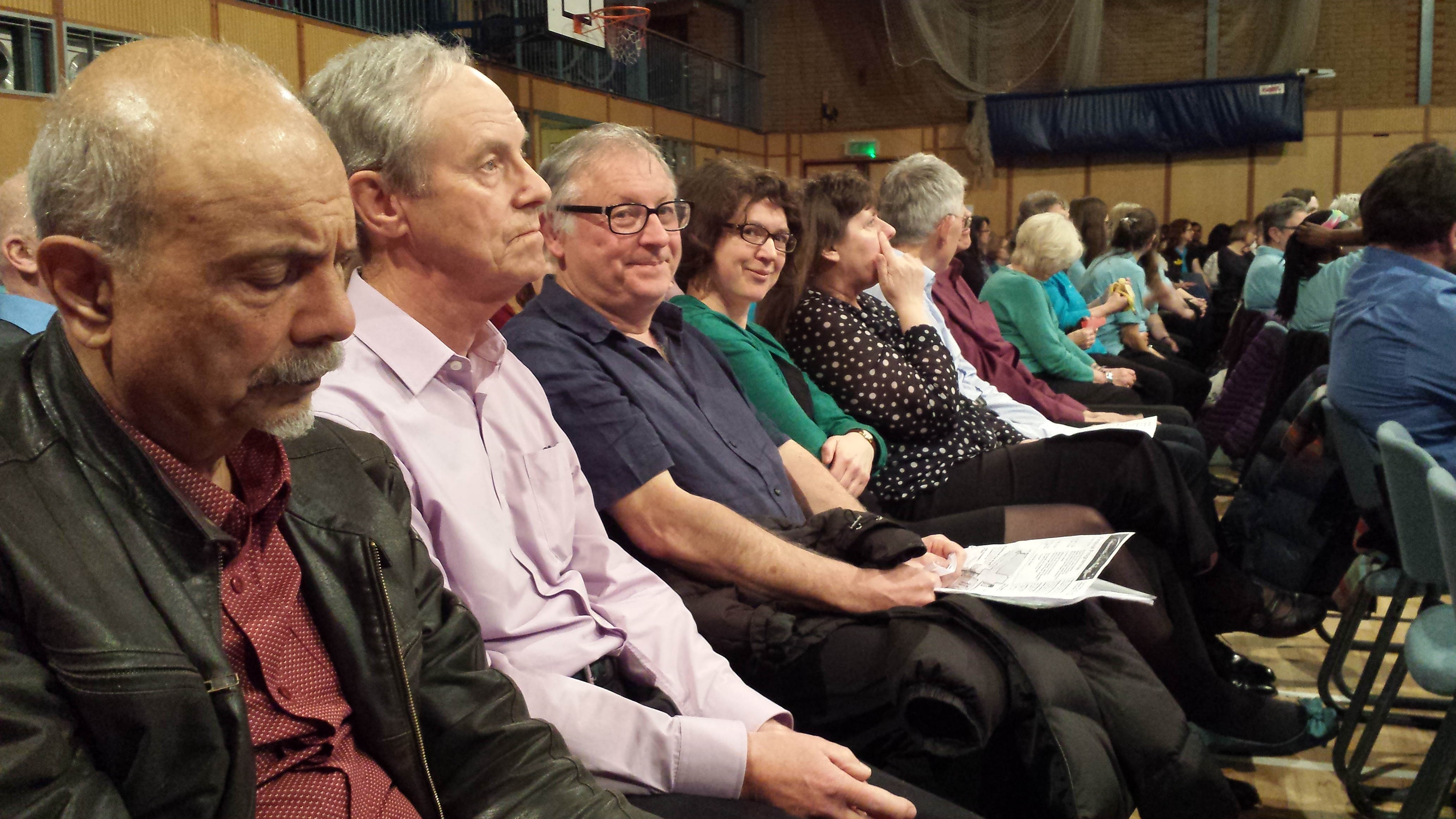 We joined another 2 choirs and some musicians for an evening of music organised by the University of Leicester UNICEF On Campus Society to raise funds for their work with Syrian children who have been affected by the war in Syria. £650 was raised for this worthwhile cause. Here we are at the end of our set.