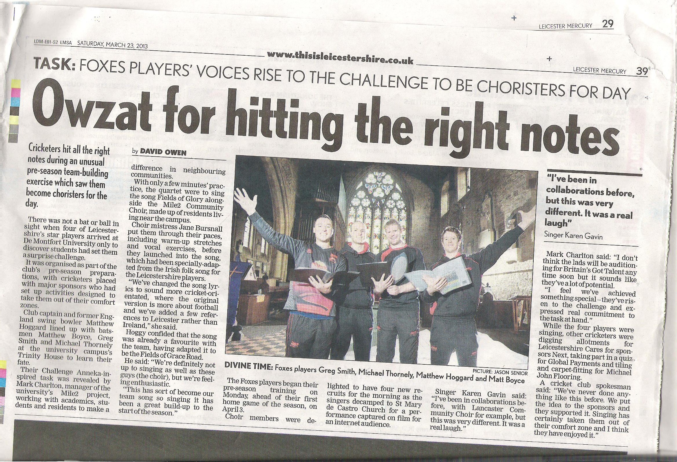 Leicester Mercury coverage of Square Mile Choir and LCC singing together